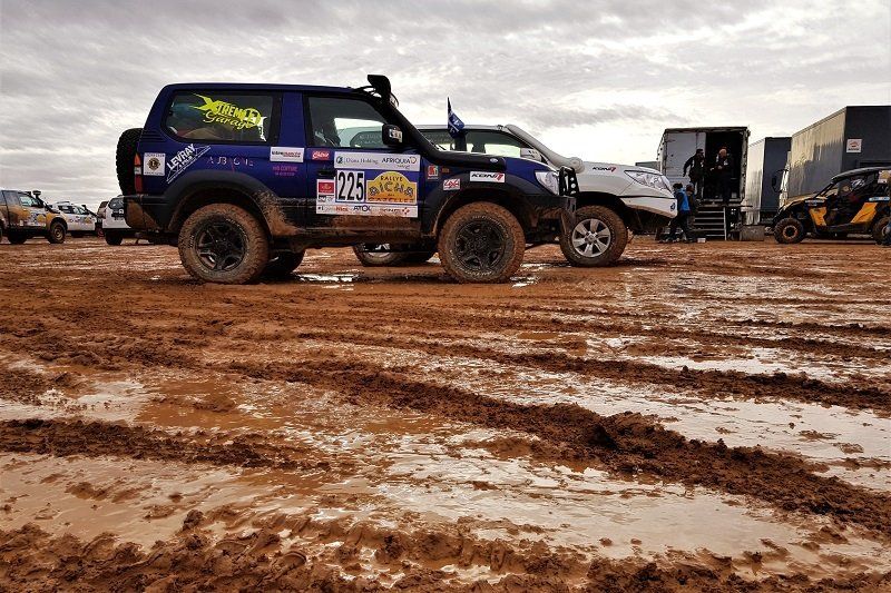 A few crews are still in the dunes of Merzouga this morning. They didn't find their way out yesterday. The Staff reassures us, Orgas watched over them all night from a distance. The rain will make their passage easier this morning by packing down the sand and making it harder.